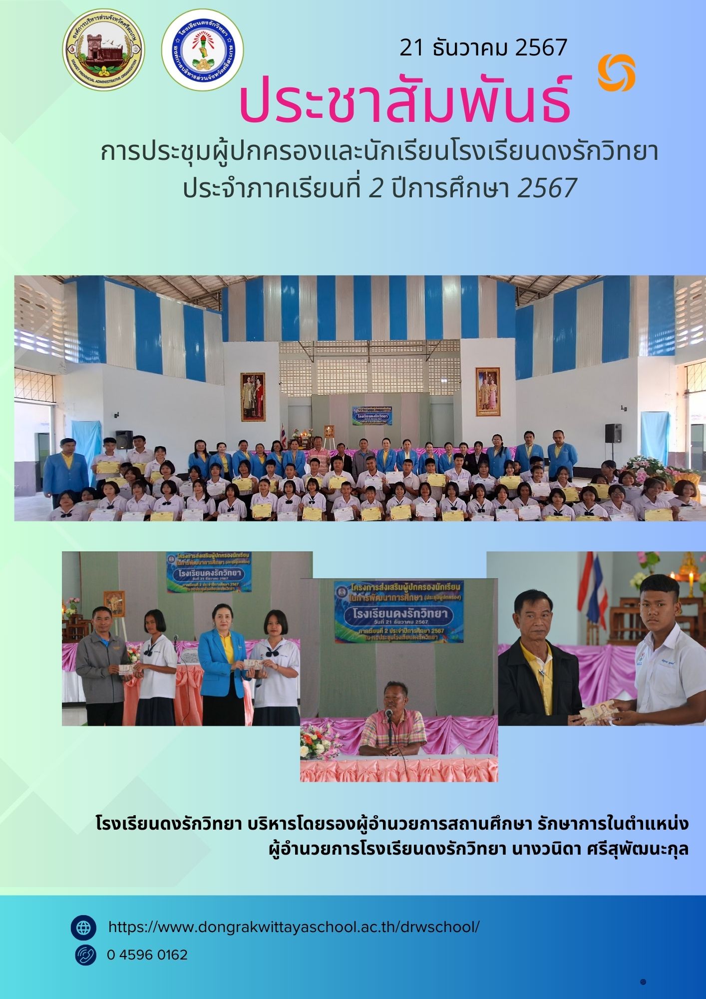 @@@ โรงเรียนดงรักวิทยาจัดการประชุมผู้ปกครอง และนักเรียน ประจำประจำภาคเรียนที่ 2 ปีการศึกษา 2567 ณ ห้องประชุมโรงเรียนดงรักวิทยาวิทยา เมื่อวันที่ 21 ธันวาคม 2567
