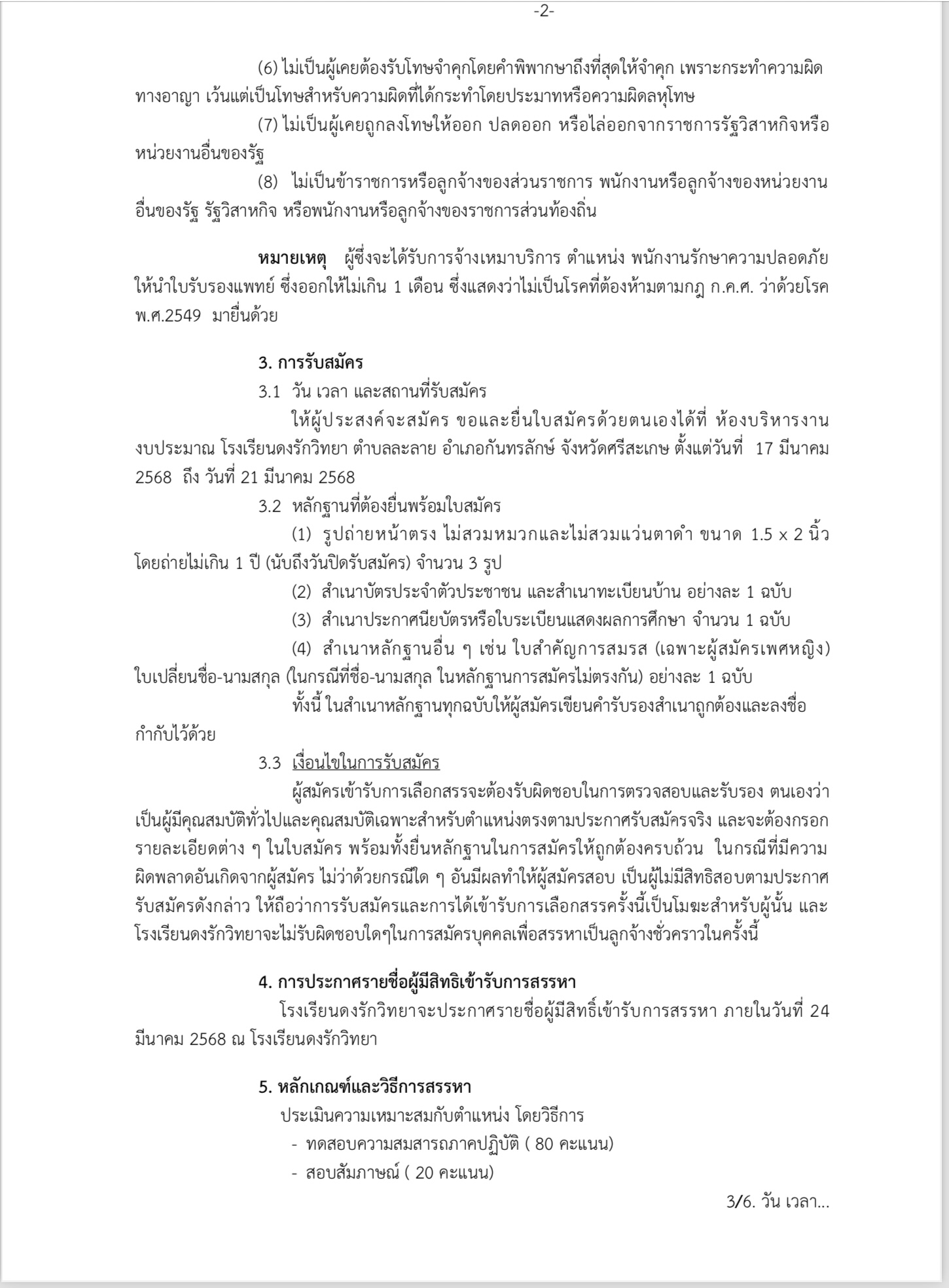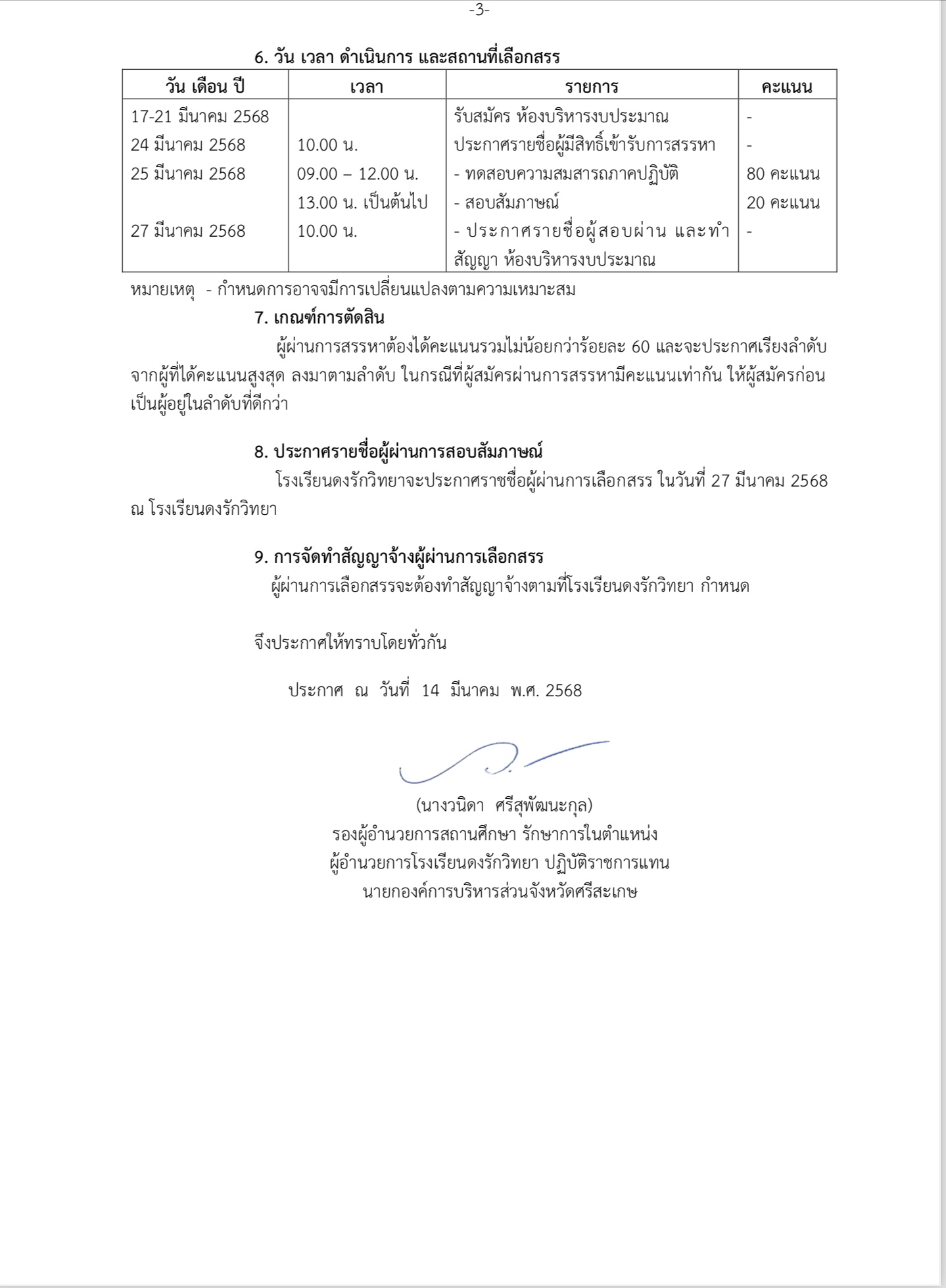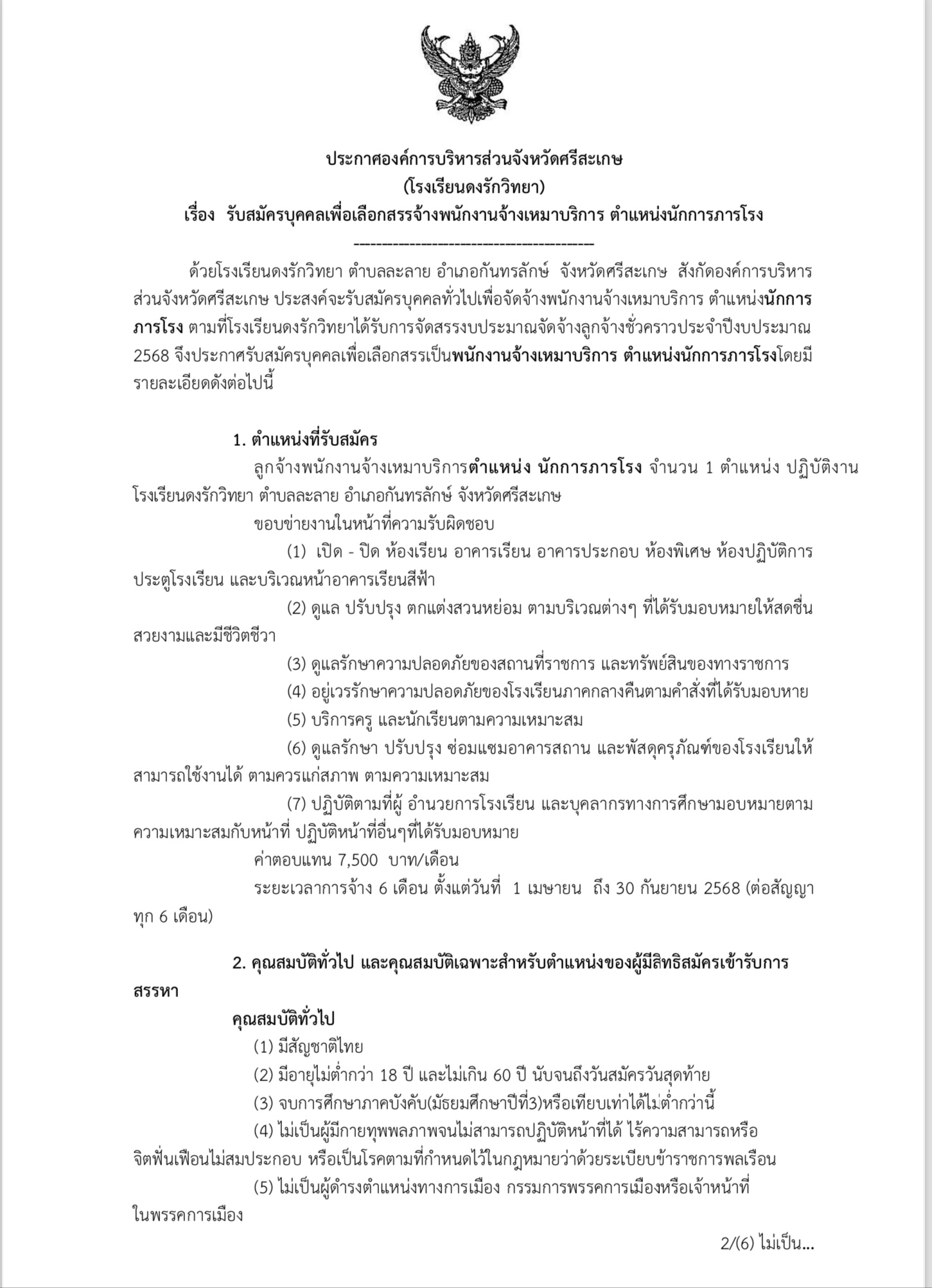 ประกาศผล/ประกาศการรับสมัครตำแหน่งนักการภารโรง โรงเรียนดงรักวิทยา
