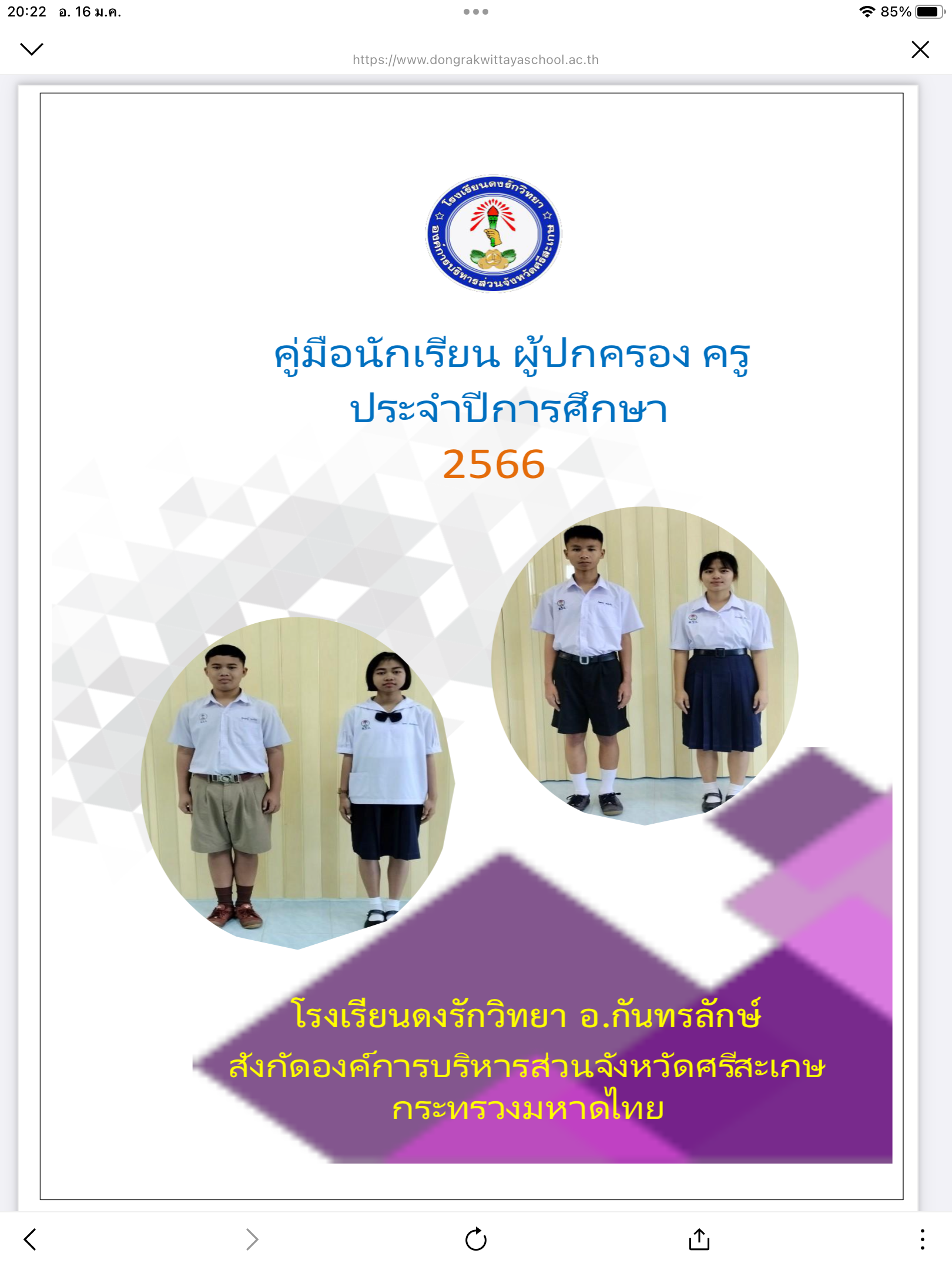 คู่มือนักเรียน ผู้ปกครอง ครู โรงเรียนดงรักวิทยา