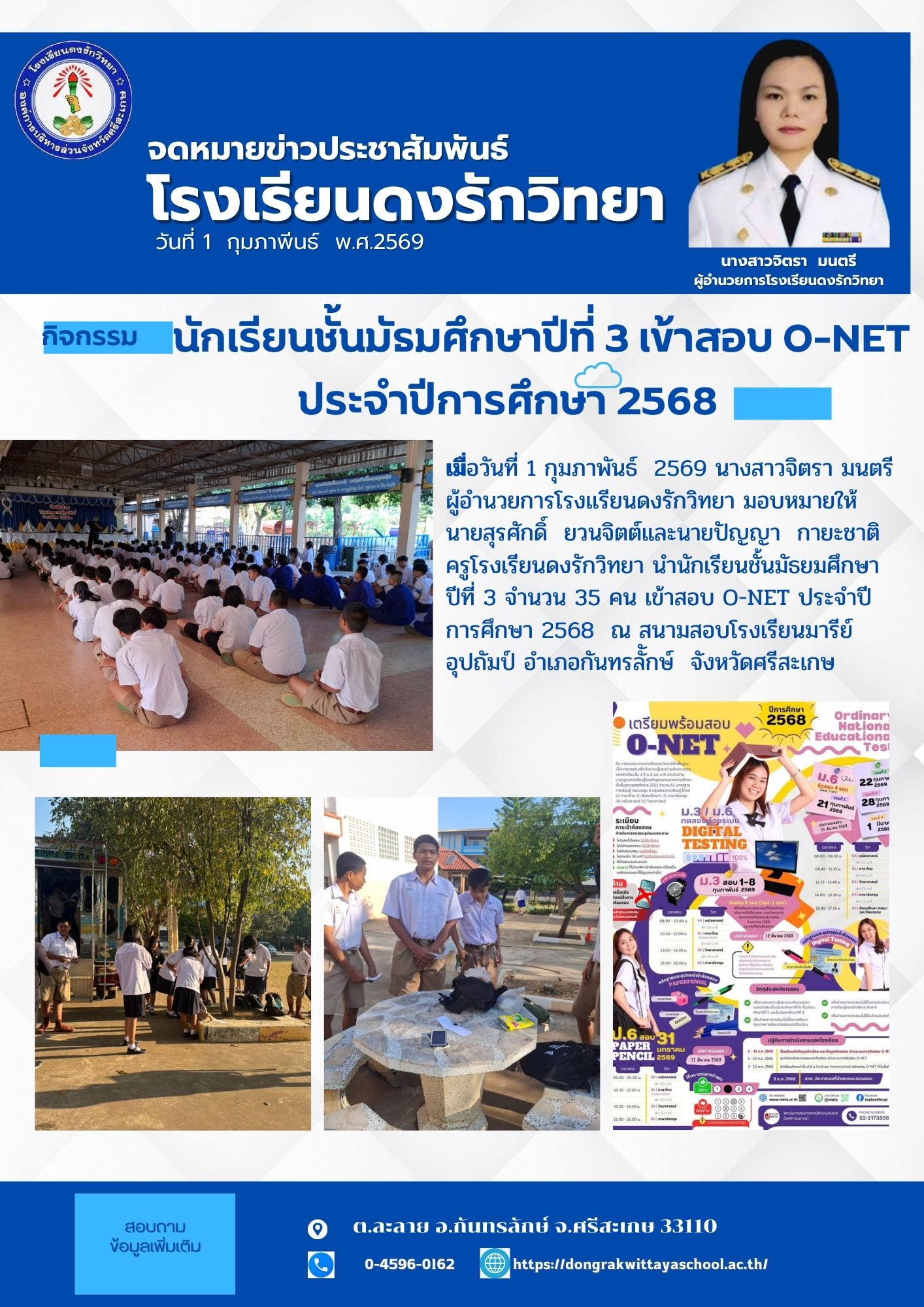 วันที่ 20 กุมภาพันธ์ 2569 ฝ่ายบริหารงานวิชาการโรงเรียนดงรักวิทยา เเนะเเนวนักเรียนชั้นมัธยมศึกษาปีที่ 3