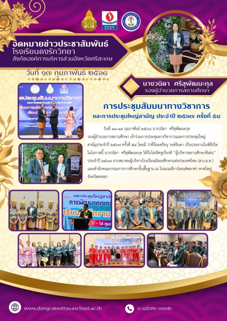 ข่าวประชาสัมพันธ์การรับการนิเทศผลลัพธ์ผู้เรียน จากอบจ.ศรีสะเกษ 21 ม.ค.2568 admin / 21 มกราคม 2025 @@@ โรงเรียนดงรักวิท
