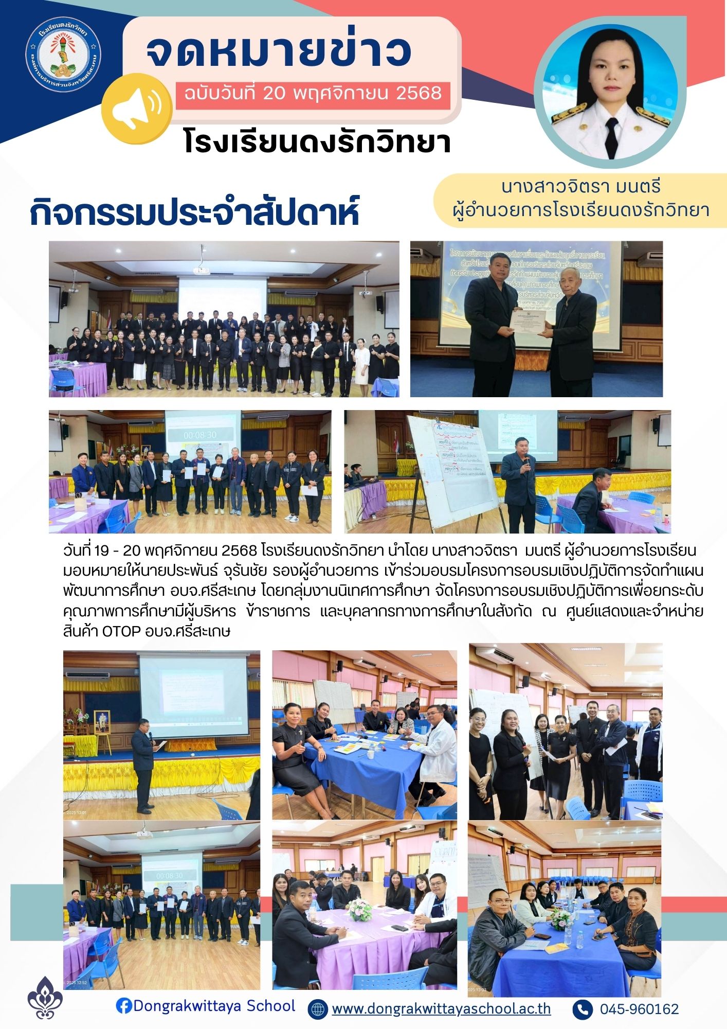 ข่าวประชาสัมพันธ์, จดหมายข่าวประชาสัมพันธ์วันที่ 19 – 20 พฤศจิกายน 2568โครงการอบรมเชิงปฏิบัติการเพื่อยกระดับคุณภาพการศึกษามีผู้บริหาร ข้าราชการ และบุคลากรทางการศึกษาในสังกัด ณ ศูนย์แสดงและจำหน่ายสินค้า OTOP อบจ.ศรีสะเกษ admin / 23 พฤศจิกายน 2025 วันที่ 19 – 20