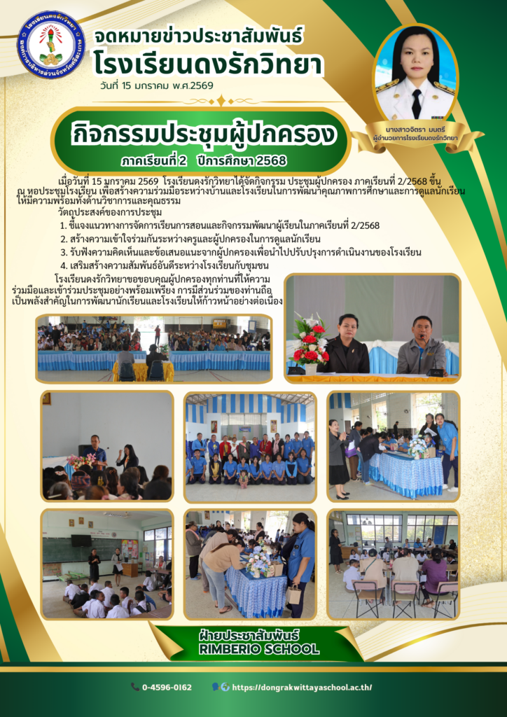 ข่าวกิจกรรม, ข่าวประชาสัมพันธ์, จดหมายข่าวประชาสัมพันธ์เมื่อวันที่ 15 มกราคม 2569 โรงเรียนดงรักวิทยาได้จัดกิจกรรม ประชุมผู้ปกครอง ภาคเรียนที่ 2/2568 admin / 26 มกราคม 2026 เมื่อวันที่ 15 มกราค