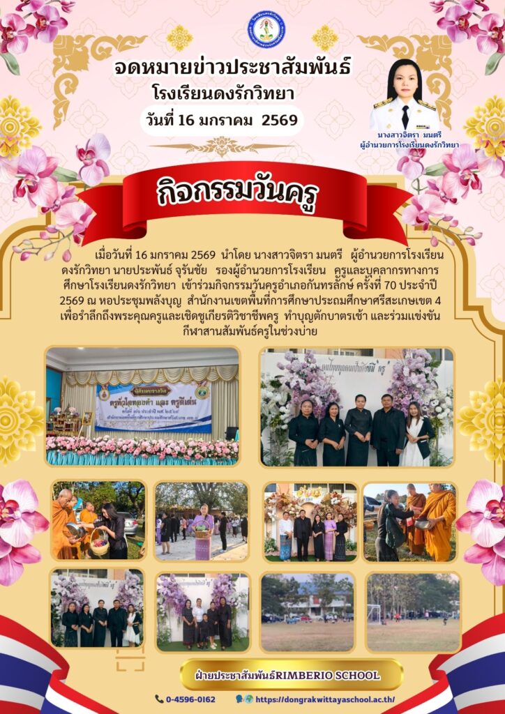 ข่าวกิจกรรม, ข่าวประชาสัมพันธ์, จดหมายข่าวประชาสัมพันธ์เมื่อวันที่ 16 มกราคม 2569 คณะครูและบุคลากรทางการศึกษาโรงเรียนดงรักวิทยา กิจกรรมวันครูอำเภอกันทรลักษ์ ครั้งที่ 70 ประจำปี 2569 admin / 26 มกราคม 2026 เมื่อวันที่ 16 มกราค