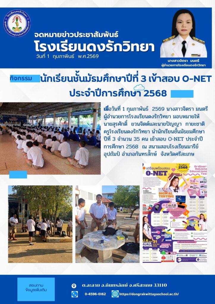 ข่าวกิจกรรม, ข่าวประชาสัมพันธ์, จดหมายข่าวประชาสัมพันธ์, ผลงานวิชาการนักเรียนชั้นมัธมศึกษาปีที่ 3 เข้าสอบ O-NET ประจำปีการศึกษา 2568 admin / 10 กุมภาพันธ์ 2026 เมื่อวันที่ 1 กุมภาพ