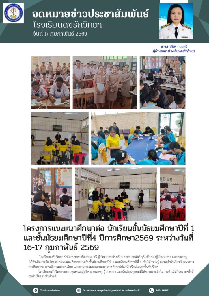 ข่าวกิจกรรม, ข่าวประชาสัมพันธ์, จดหมายข่าวประชาสัมพันธ์วันที่ 20 กุมภาพันธ์ 2569 ฝ่ายบริหารงานวิชาการโรงเรียนดงรักวิทยา เเนะเเนวนักเรียนชั้นมัธยมศึกษาปีที่ 3 admin / 23 กุมภาพันธ์ 2026 มื่อวันที่ 20 กุมภาพ