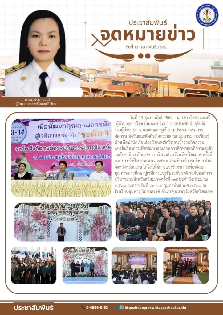 ข่าวกิจกรรม, ข่าวประชาสัมพันธ์, จดหมายข่าวประชาสัมพันธ์, ผลงานวิชาการวันที่ 14 กุมภาพันธ์ 2569 โรงเรียนดงรักวิทยานำนักเรียนเข้าร่วมการแข่งขันทักษะวิชาการเพื่อพัฒนาคุณภาพ การศึกษาสู่เวทีการเเข่งขันระดับชาติ ระดับองค์การบริหารส่วนจังหวัดศรีสะเกษ ครั้งที่ 17 ประจำปีงบประมาณ 2569 admin / 17 กุมภาพันธ์ 2026 เมื่อวันที่ 14 กุมภา
